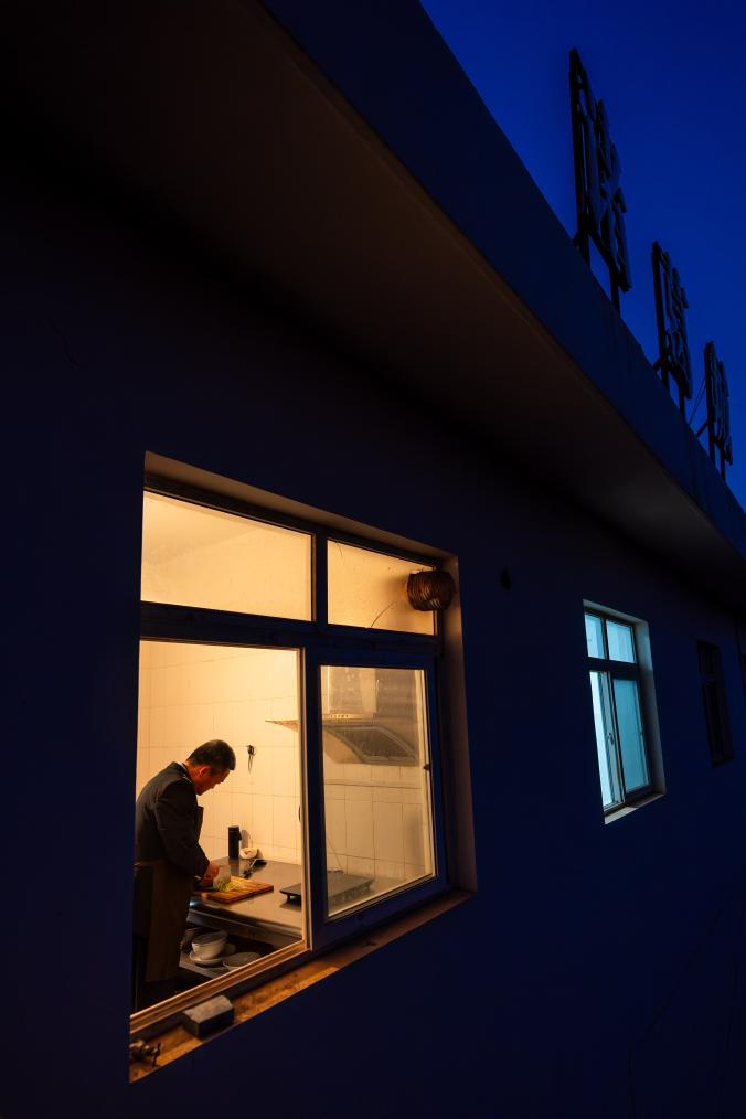 诸葛城站车站值班员李燕林在厨房做晚饭(1月21日摄)。