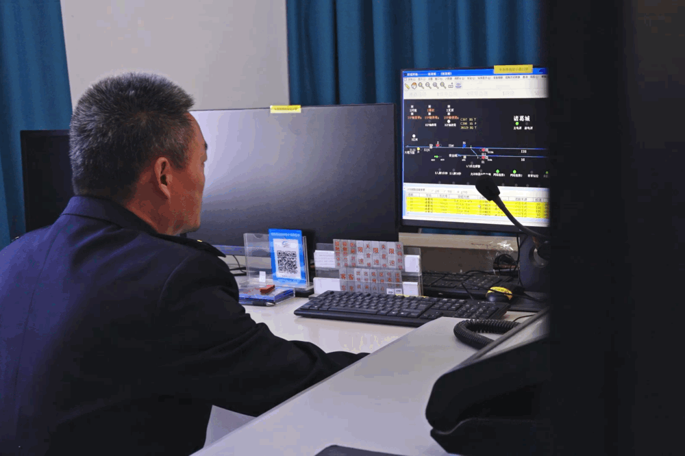 诸葛城站车站值班员李燕林在行车室监看行车设备。