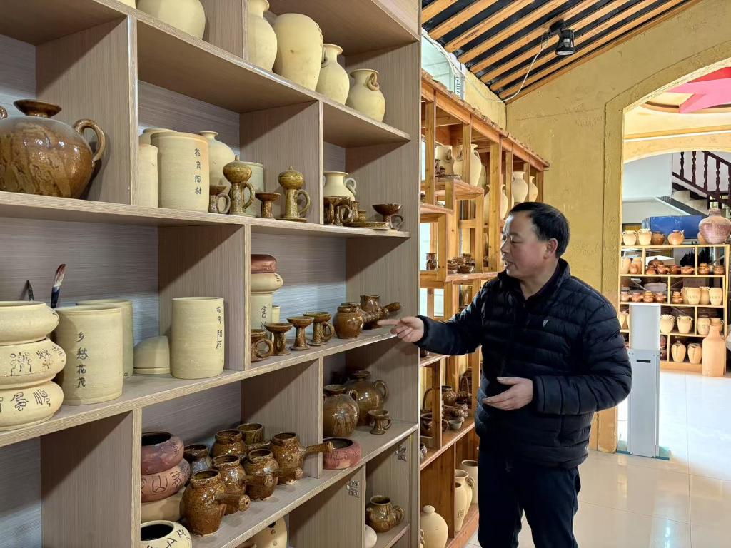 村民母先才的陶艺馆,主要制作花瓶、茶具等生产生活用品和观赏工艺品。这里还成为不少学校的写生基地,每年到陶艺馆参与陶艺体验的有万余人。