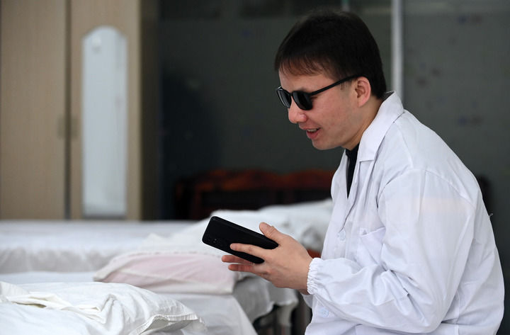 在广西残联的帮助下,他参加了当地组织的盲人按摩培训班。2019年,经过3年学习,蓝宁从南宁市盲聋哑学校中医康复保健专业毕业,顺利成为一名盲人保健按摩师。