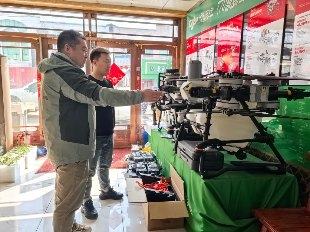 在宁安市东京城镇的煜丰农业服务有限公司,店内摆放着多种型号的农业无人机产品。“这架大疆T70无人机具有超大载重、一键起飞等优点。”公司负责人秦彦飞说,此款无人机目前已销售100余架。