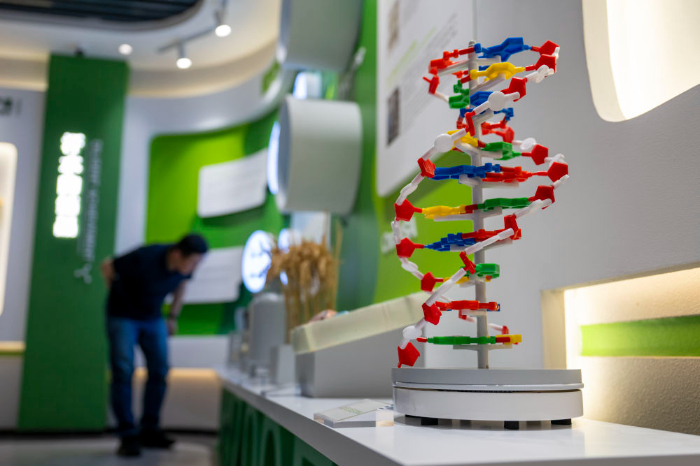 2025年4月21日,参观人员在湖北武汉禾元生物科技股份有限公司展厅参观。新华社记者伍志尊摄