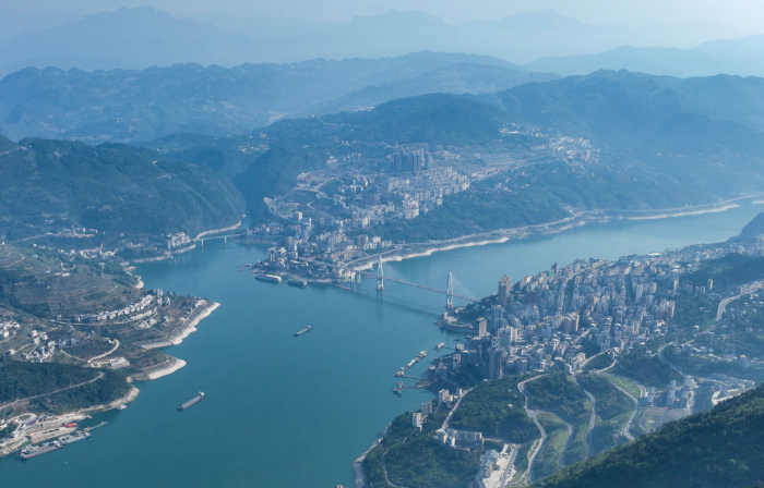 2025年4月28日,船舶行驶在湖北省恩施州巴东县巫峡口(无人机照片)。新华社记者杜子璇摄