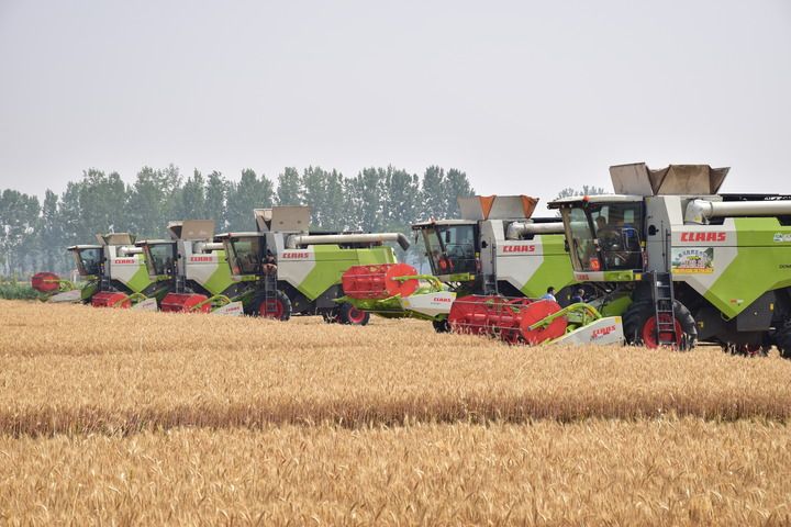 5月20日上午,河南邓州市2025年小麦机收减损技能大比武现场。(新华社记者 郑家宝摄)
