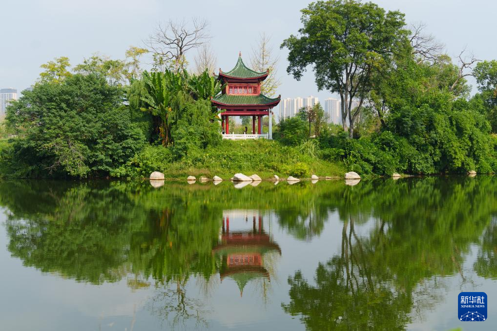 这是2024年9月27日在冷水滩区宋家洲生态公园拍摄的一处内湖水域。 新华社发(雷中祥 摄)