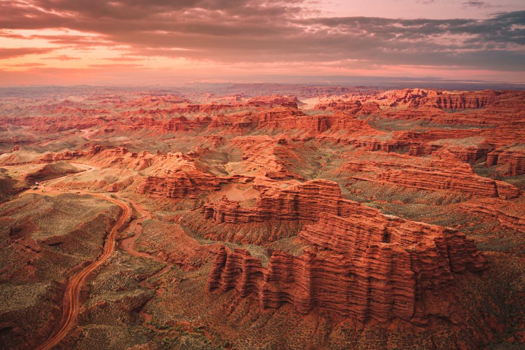人们在甘肃省张掖外星谷星际主题地质公园参加徒步活动。新华社发(成林 摄)