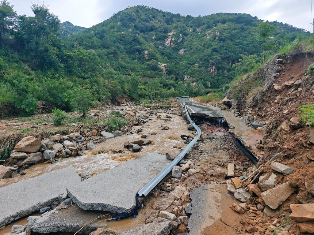 通向石屋子村的道路已被损毁。新华社记者 邵鲁文 摄