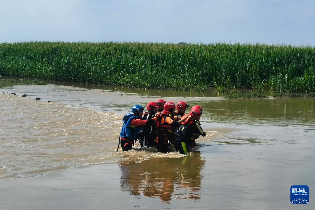 在大同市天镇县谷前堡镇一畔庄村,抢险救援人员在进行搜救(手机照片,7月28日摄)。新华社发