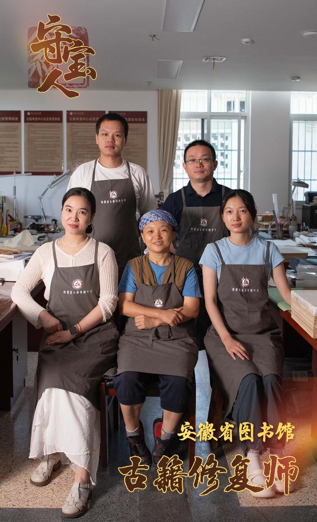 6月17日,安徽省图书馆的古籍修复师们合影留念(前排从左至右依次为:耿宁、周亚寒、张文文,后排从左至右依次为:金鑫、臧春华)。