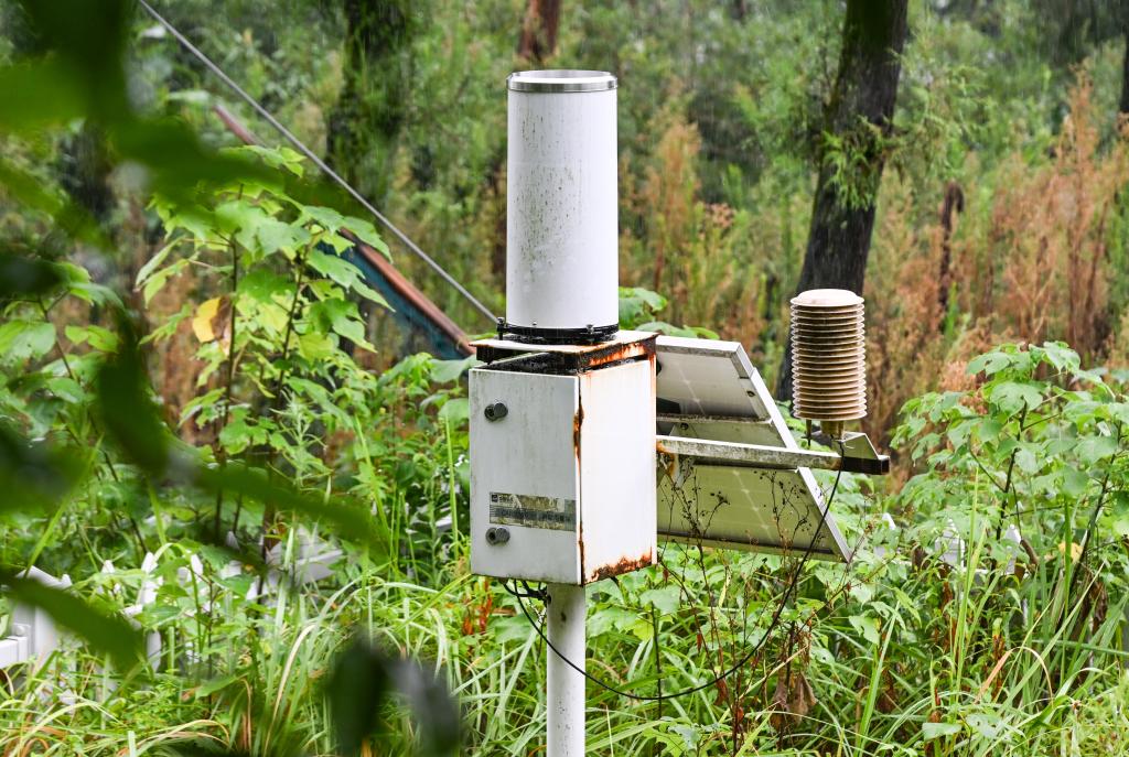 这是8月11日在重庆市合川区官渡镇兴胜村拍摄的雨量监测装置。新华社记者 王全超 摄