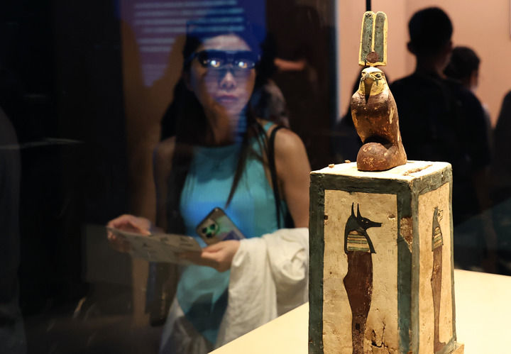 “金字塔之巅:古埃及文明大展”在13个月里吸引277万人次中外观众。本组图片均为新华每日电讯记者方喆摄