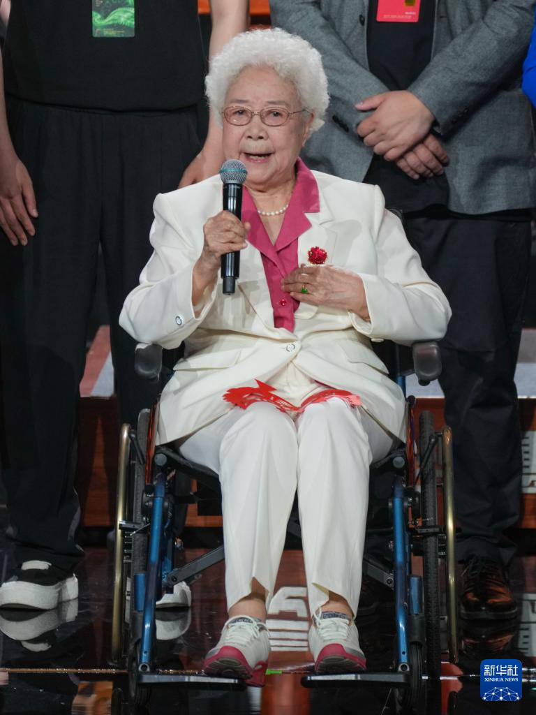 8月23日,“人民艺术家”国家荣誉称号获得者田华在第二十届中国长春电影节开幕式暨长影成立80周年交响音乐会现场致辞。新华社记者 张楠 摄