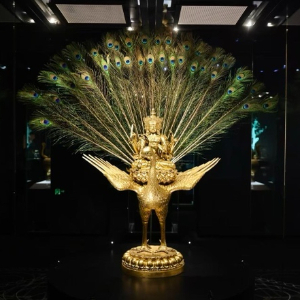 图为展厅里的明宣德铜鎏金孔雀明王像。新华社发