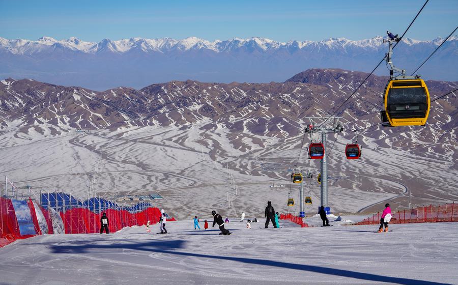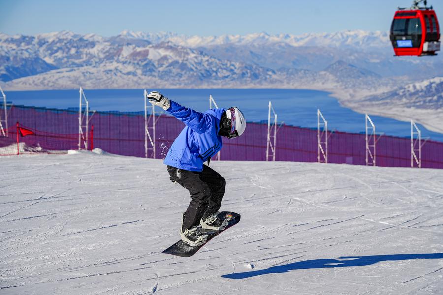 雪友在新疆赛里木湖滑雪场滑雪(2025年11月29日摄)。新华社记者 徐宏岩 摄
