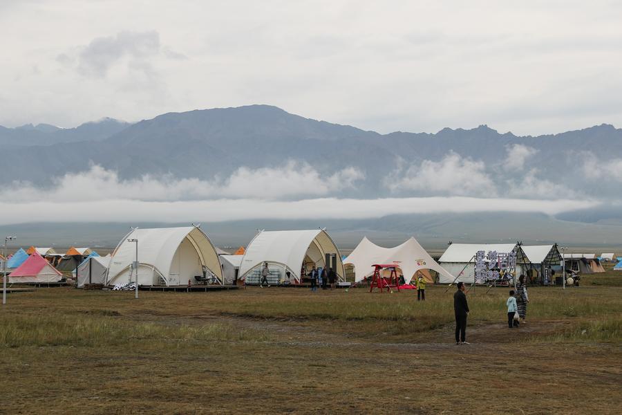 这是2025年7月16日拍摄的赛里木湖景区内一处低碳露营地。新华社记者 王婧嫱 摄