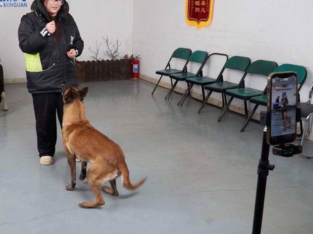 图为在状元训犬基地内,训犬师正在直播训犬。新华社记者 崔师豪 摄