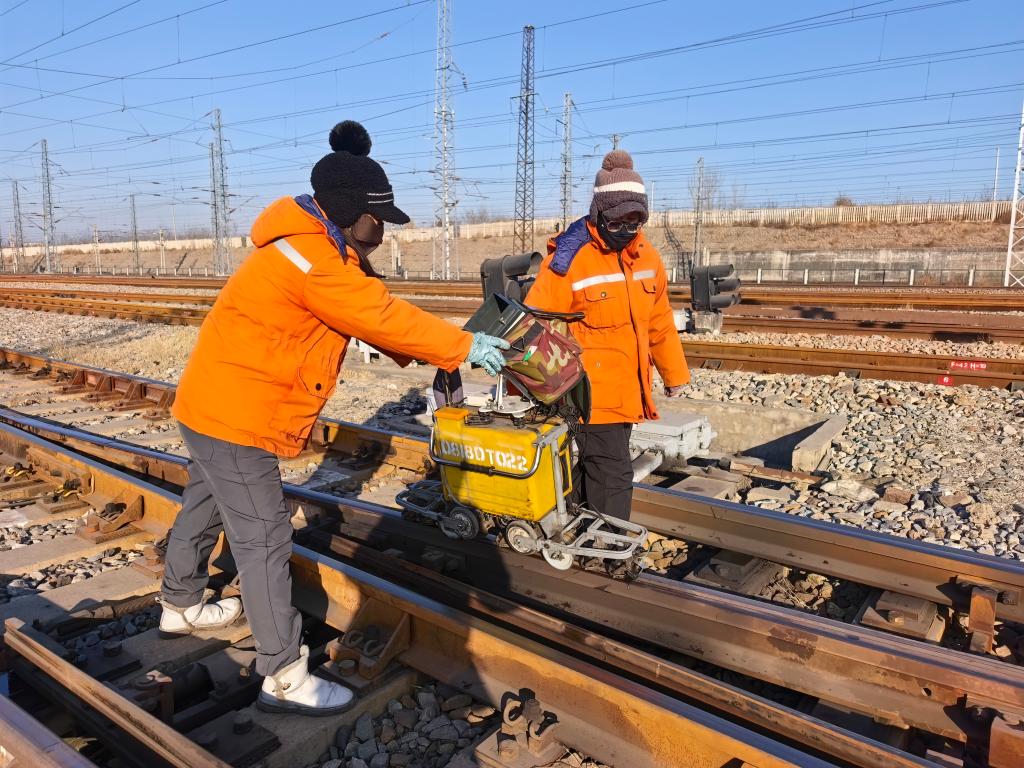 新华社石家庄3月1日电(记者郭雅茹)2月28日,天刚蒙蒙亮,中国铁路太原局集团有限公司秦皇岛西工务段柳村女子探伤工区的探伤队员们便早早来到班组,换上橙色工装,准备开启新一天的钢轨“体检”工作。