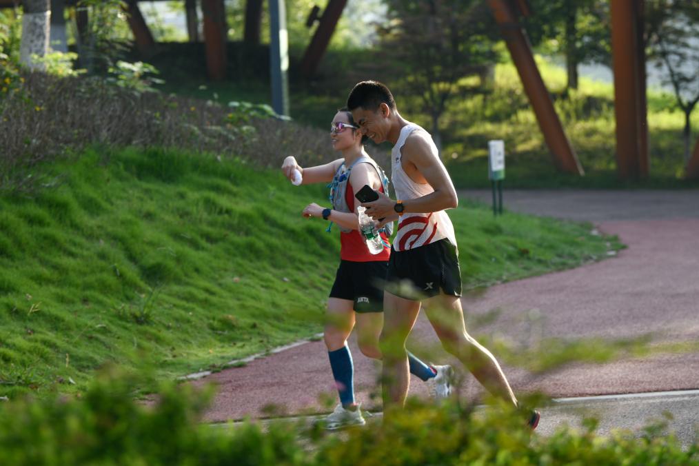 市民在成都天府绿道跑步。新华社记者 胥冰洁 摄
