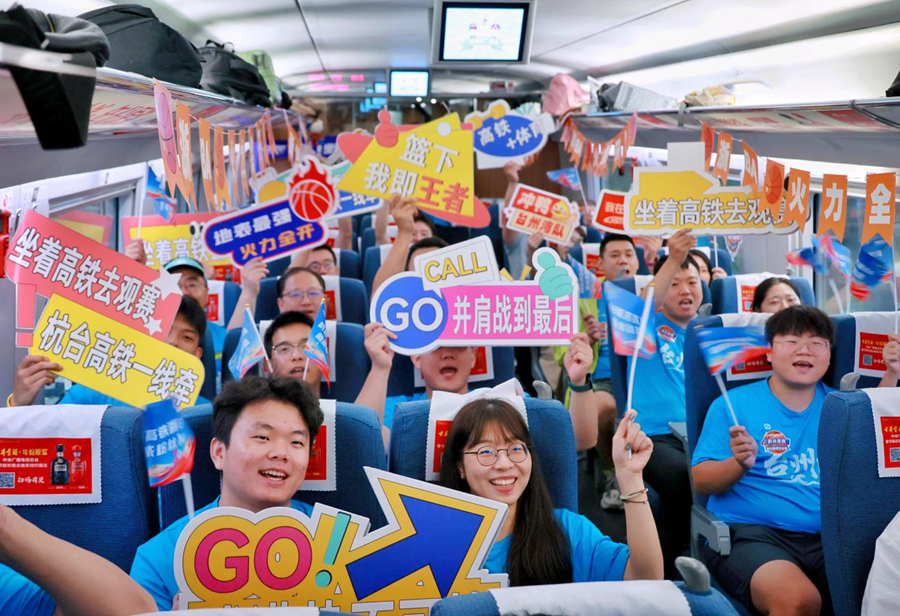 2025年9月10日,杭台高铁首开“浙BA”球迷列车。(国铁上海局供图)