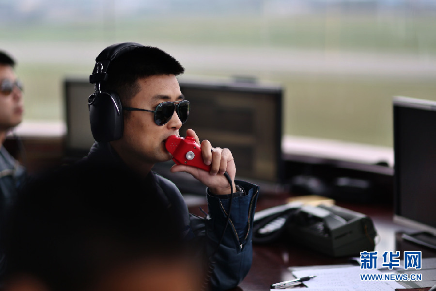 蒋佳冀在塔台指挥空中训练。新华社发 刘畅 摄