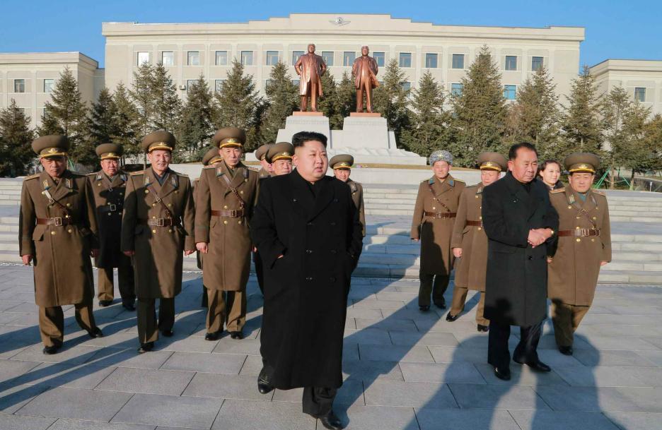 金正恩视察空军指挥部,妹妹金与正(右二)陪同(图片来源:劳动新闻)