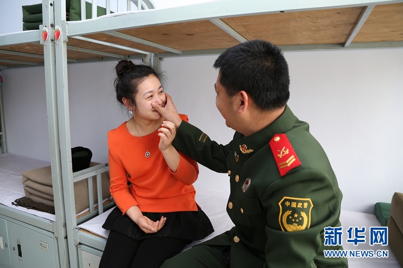 6日,“三八”妇女节前夕,黑龙江边防总队黑河边检站勤务中队为警嫂准备了一份特殊节日礼物。这个中队邀请警嫂毕广红与丈夫四级警士长史庆峰团聚,在营区过“三八”妇女节。据史庆峰介绍,从2005年与妻子毕广红结婚后,还从来没有陪伴她过个“三八”妇女节。虽然成家后定居在黑河市区,但由于部队任务需要,每周甚至每月只能探亲一次,家里的生活重担由妻子毕广红一人承担。警嫂毕广红激动地说:“这是她最想要的礼物,也希望丈夫能安心在部队工作,家里的事情她会照顾好。”(刘松)