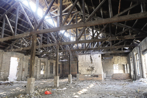 在废墟之间,记者找到了轮机厂房遗址,它四周已是杂草丛生,甚至还堆放着不少垃圾。遗址前有块石碑斜插在沙土里,上面的碑文详细介绍,这个轮机厂房建于1880年5月,长55.6米、宽19.8米,是大沽船坞的主要机械加工力量,也是北洋水师大沽船坞存留至今的唯一建筑。如今,这个建于135年前的建筑,门窗已经残破不堪,甚至屋顶还出现了多处漏洞,厂房内到处都是残砖碎瓦。“我在这个厂子里干了35年了,20多年前我们还在轮机厂房里加工生产一些船上所需的零部件。”张师傅告诉记者,那时候轮机厂房还挺好的,可自打工人们从里边搬出来,房子风吹日晒,又无人打理,就变成了今天这般模样,而大家看着都怪心疼的,毕竟它记录了一段历史。