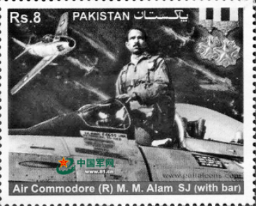 就这样,在短短一分钟之内,擅长机炮作战的阿拉姆利用短促射击技巧连续击落4架“猎人”,在稍后的作战中又击落了第5架,创下了一个至今仍未被打破的空中快速歼敌纪录。阿拉姆也因此荣获“勇气之星”勋章,成为喷气机时代唯一一位只用一天时间就跻身王牌之列的飞行员。在整个战争期间,阿拉姆驾驶F-86“佩刀”与敌机进行了多次空战,共击落9架印度飞机,他也被巴基斯坦视为国家英雄,名字列在卡拉奇巴基斯坦空军博物馆名人堂名单的最顶部。