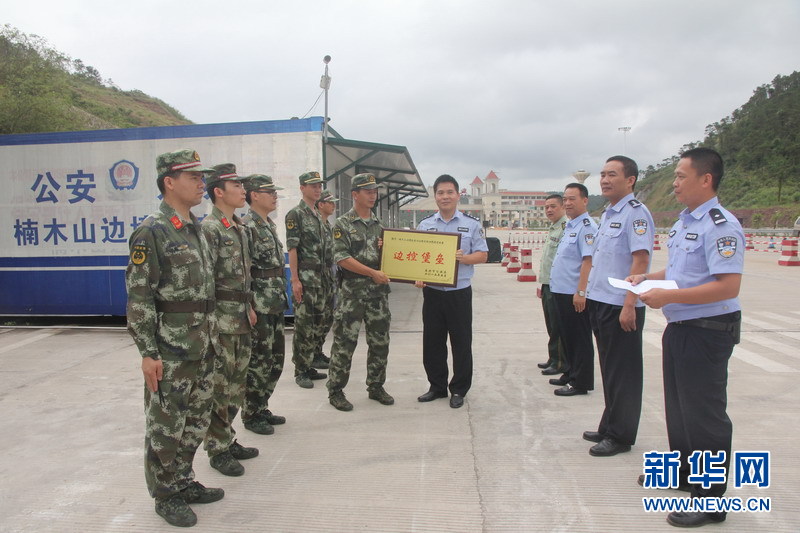 东兴市公安局领导授予楠木山边境检查站“边控堡垒”牌匾。黄莹 摄