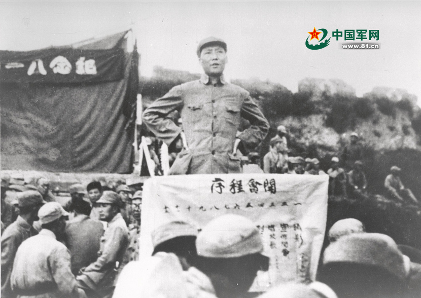 1938年8月1日,毛泽东同志在抗大四期学员毕业大会上讲话。