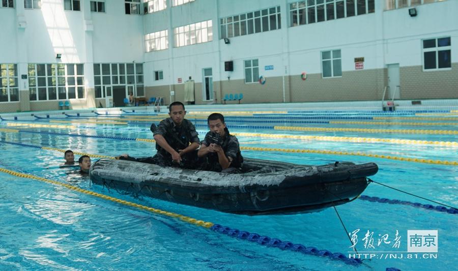装甲兵学院游泳馆内,9名学员正全副武装,快速泅渡穿越水中障碍,向敌方根据地逼近……教员根据战场态势,不时指挥该示范班完成各种战术行动,示范班内成员密切配合,完成泅渡、越障、射击等一系列动作,并实时通过手势进行情报沟通,一堂全程模拟登陆作战的武装泅渡课正在进行。这是该院李炳志副教授进行武装泅渡课程改革中,组织学员训练的一个场景。