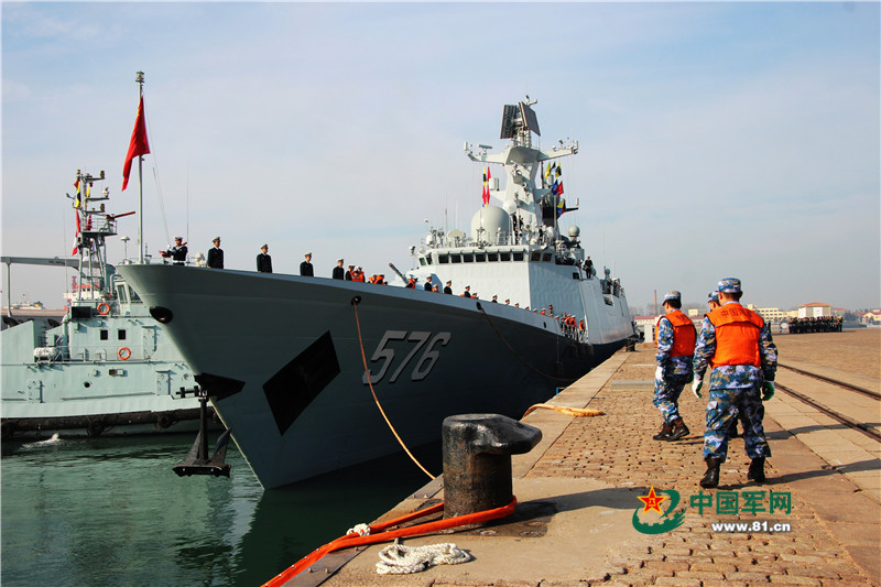 12月6日上午10时,青岛某军港,天高云淡,汽笛长鸣。海军第22批护航编队三艘军舰先后解缆启航,驶离青岛某军港,奔赴亚丁湾、索马里海域接替第21批护航编队执行护航任务。第22批护航编队由导弹护卫舰“大庆”舰、导弹驱逐舰“青岛”舰和综合补给舰“太湖”舰组成,携带两架舰载直升机,特战队员数十名,任务官兵700余人。其中,“大庆”舰首次执行护航任务,“青岛”舰是第2次执行护航任务,“太湖”舰连续执行过两批护航任务。胡宝良摄