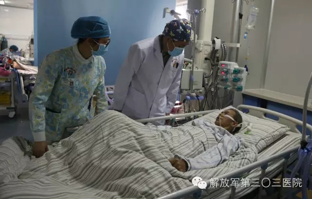 4月8日,记者在解放军第303医院重症医学科病房里看到丘老伯时,他躺在病床上,神志清醒,正在输液,康复的不错。