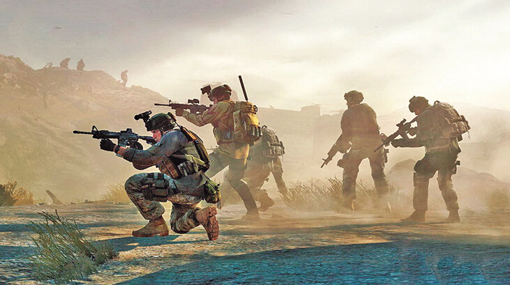 相比之下,在《美国狙击手》的电影中海豹分队的特种兵在建筑物内进行小队搜索前进时,大部分时间采用持枪搜索前进的姿势,而且队形转换时,还会采用枪口朝上的擎枪动作,确保小组内部的安全。在射击游戏《秘密潜入》的敌方特种兵大部分时间采用的都是枪口斜下的持枪警戒动作,只有在发现敌人的时候,才会做出据枪的动作。实际上持枪搜索在实战中比据枪更具优势: