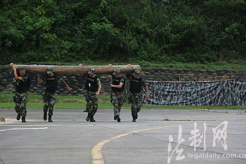 图为特战队员们举起圆木准备冲刺