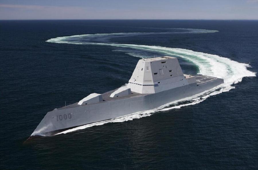 DDG-1000型导弹驱逐舰首舰朱姆沃尔特号于2013年10月28日在马里兰州巴斯钢铁造船厂下水。身为全球头号强权美国的新世代主力水面舰艇,本级舰从舰体设计、电机动力、指管通情、网路通信、侦测导航、武器系统等,里里外外无一不不是超越当代、全新研发的顶尖科技结晶,再度展现了美国海军无与伦比的科技实力、财力以及思想上的前瞻远见,全球头号海强的架势展现无遗。