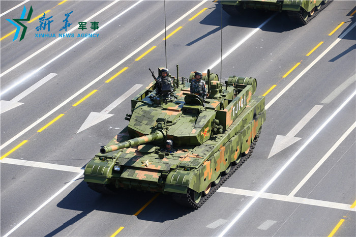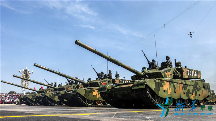 行进在27个装备方队最前面的,就是红军团官兵驾驶的我军最先进且完全信息化的99A式主战坦克。