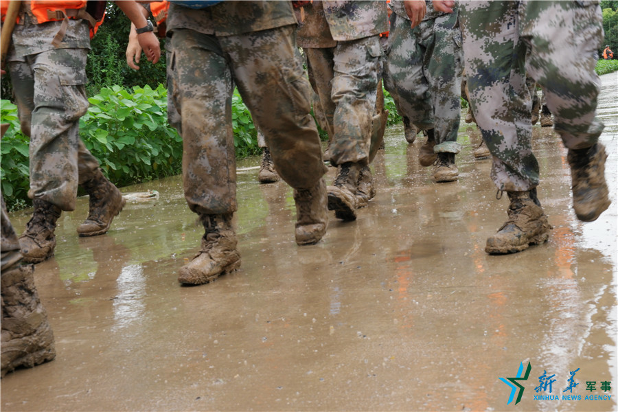 奋战一昼夜的官兵顾不上满身泥水,紧急奔赴下一处险情。黄锋 摄