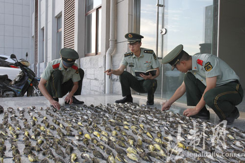 8月23日上午9时许,江苏公安边防总队盐城射阳河闸边防派出所官兵在辖区巡逻时,发现一名驾驶摩托车的中年男子行迹可疑,就示意该男子靠边停车接受检查,当官兵打开车后的泡沫箱时,让巡逻官兵吓了一跳,里面装的居然是已被捕杀的406多只野生鸟类,这些鸟类有啄木鸟、喜鹊、红隼和戴胜等国家级保护动物,该案件正在进一步调查中。(张凯峰 章善玉)