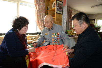 2015年11月7日,是老红军余新元93岁生日。那天,吉林省军区政治部机关代表刘华玉,“二郎山英雄筑路团”政委焦玉庆,一等功荣立者谢奉权,沂蒙新红嫂、“兵妈妈”朱呈镕,以及老红军余新元的众多“儿女们”,齐聚鞍山为余老祝寿。老红军余新元得知“女儿” 朱呈镕正在自己的企业建设一座“沂蒙红嫂文化纪念馆”时,举起大拇指说:“我跟你们大家伙说,呈镕同志不仅自个学雷锋,还带动企业员工都学雷锋,她常年拥军。所以,作为一名红军战士,呈镕同志,我决定将雷锋1960年1月8日参军入伍登火车去营口前给我的亲笔签名原版照片,把自己保存了55年的雷锋并赠送他的珍贵革命文物照片,捐赠给你的‘沂蒙红嫂文化纪念馆’。这张照片,现在都是革命文物了,我保存了55年,军博跟我要了几次,我都没舍得给。我今天为啥给你?我今天过完生日,明天就94岁了,我现在走不动了,不能再出去宣讲雷锋精神了。你经常到部队拥军,你帮我完成一个任务,就是你到部队作红嫂精神报告时,再把雷锋精神加进去,常年讲下去。”【详细】