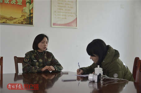 火箭军女兵陈增在接受采访。杨慧涛 摄