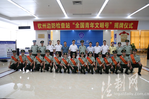 广西钦州边检站举行“全国青年文明号”揭牌仪式