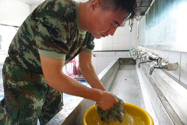 出完早操后,闫大鹏开始洗漱,精神满满地开始新的一天。
