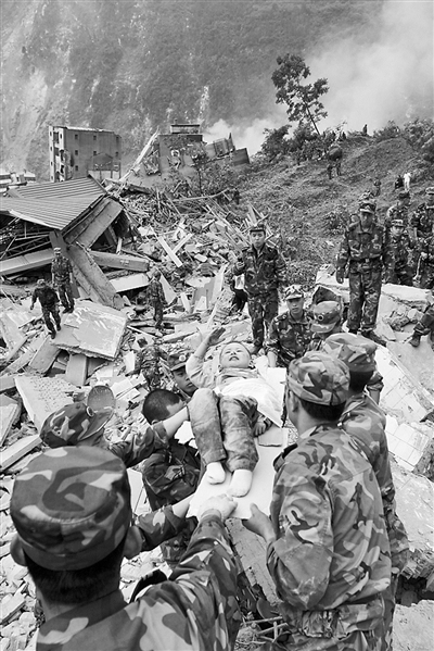 回首10年前那场山崩地裂,许多人说,当在废墟中看到身着迷彩的身影,便看到了希望,心随之安定下来。