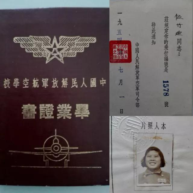 ↑伍竹迪捐赠的毕业证书和飞行编号