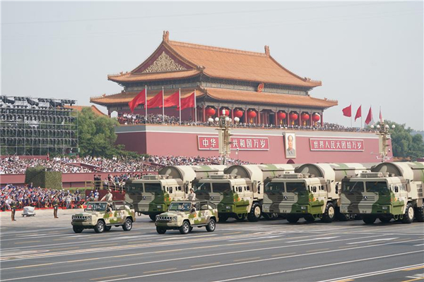 10月1日上午,庆祝中华人民共和国成立70周年大会在北京天安门广场隆重举行。 这是东风-31甲改核导弹方队。 新华社记者 程敏 摄