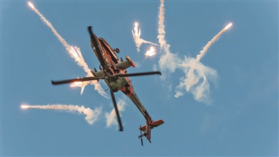直升机执行任务期间可能遭遇各种防空火力,需要依靠战术、预警、电子对抗和欺骗等措施来保护自身。合理的战术是提高生存能力的关键。如悬停攻击战术,直升机以一树之高的飞行高度隐蔽接近目标,占领攻击阵位后突然跃升悬停攻击,完成攻击后,迅速机动撤离,减少暴露时间。再如机动突击战术,直升机在使用机载武器攻击的同时不断机动,几乎不作悬停,降低被击中概率。