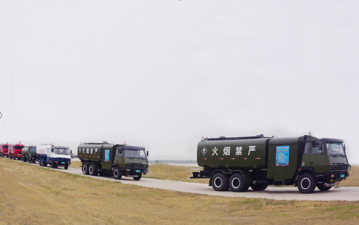 随着指挥员一声令下,由指挥车、运输车及各种保障车辆组成的车队朝着某备用机场奔腾而去。