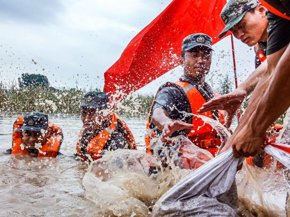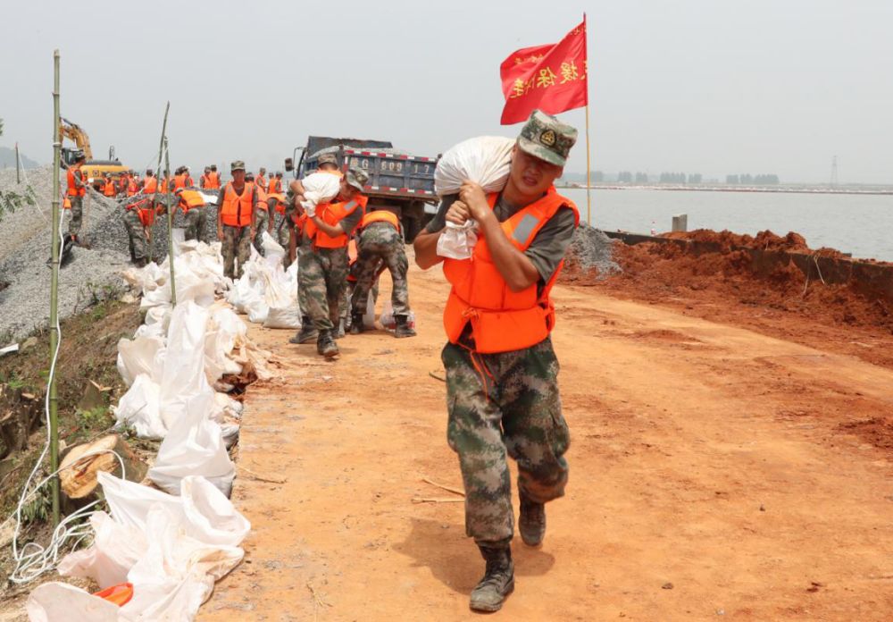 正在某海域进行濒海训练的集团军“攻坚劲旅”,12日紧急奔赴安庆市抢险救灾。部队刚刚到达就收到望江县华阳船闸附近水位即将超过大堤高度,多处出现险情的消息,官兵经过3个多小时奋战加固堤坝,初步控制了险情。