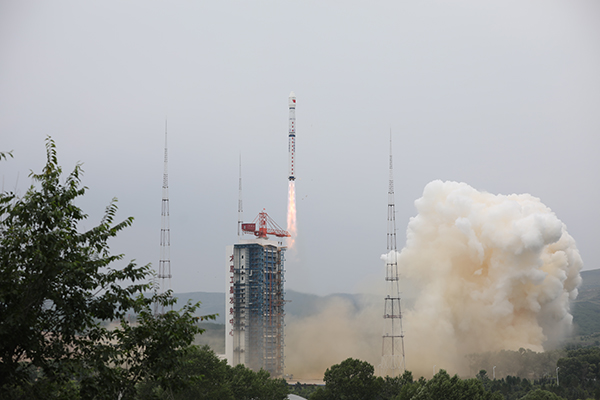 7月25日11时13分,我国在太原卫星发射中心用长征四号乙运载火箭,成功将资源三号03星送入预定轨道,发射获得圆满成功。任务搭载发射了龙虾眼X射线探测卫星、天启星座一零星。新华社发(郑逃逃 摄)
